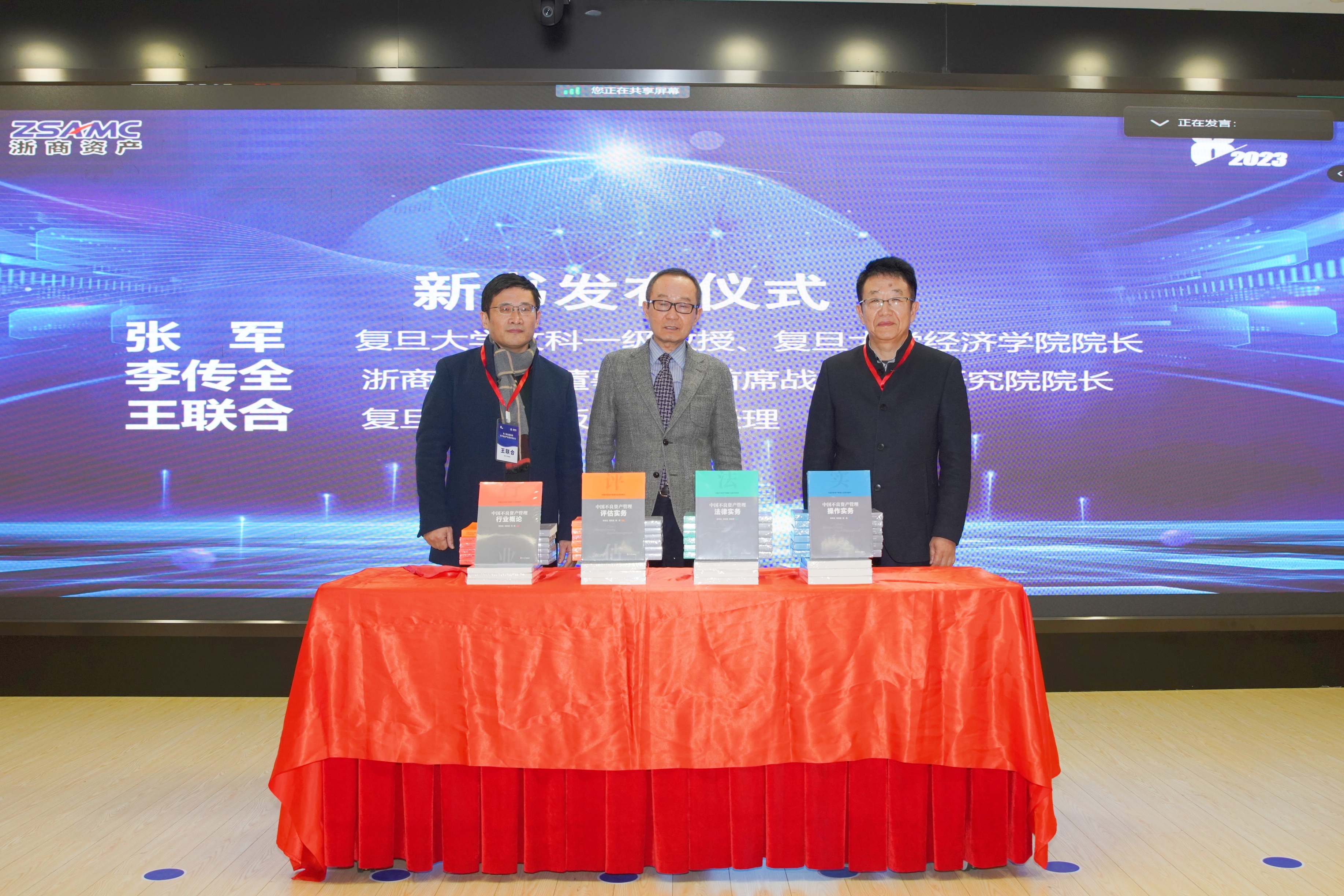 隨后,與會嘉賓共同參與了“不良資產(chǎn)系列教材與成果發(fā)布”儀式。復旦大學文科一級教授、經(jīng)濟學院院長張軍,浙商資產(chǎn)副董事長、首席戰(zhàn)略官、研究院院長李傳全,復旦大學出版社有限公司副總經(jīng)理王聯(lián)合致辭,并舉行新書發(fā)布儀式。